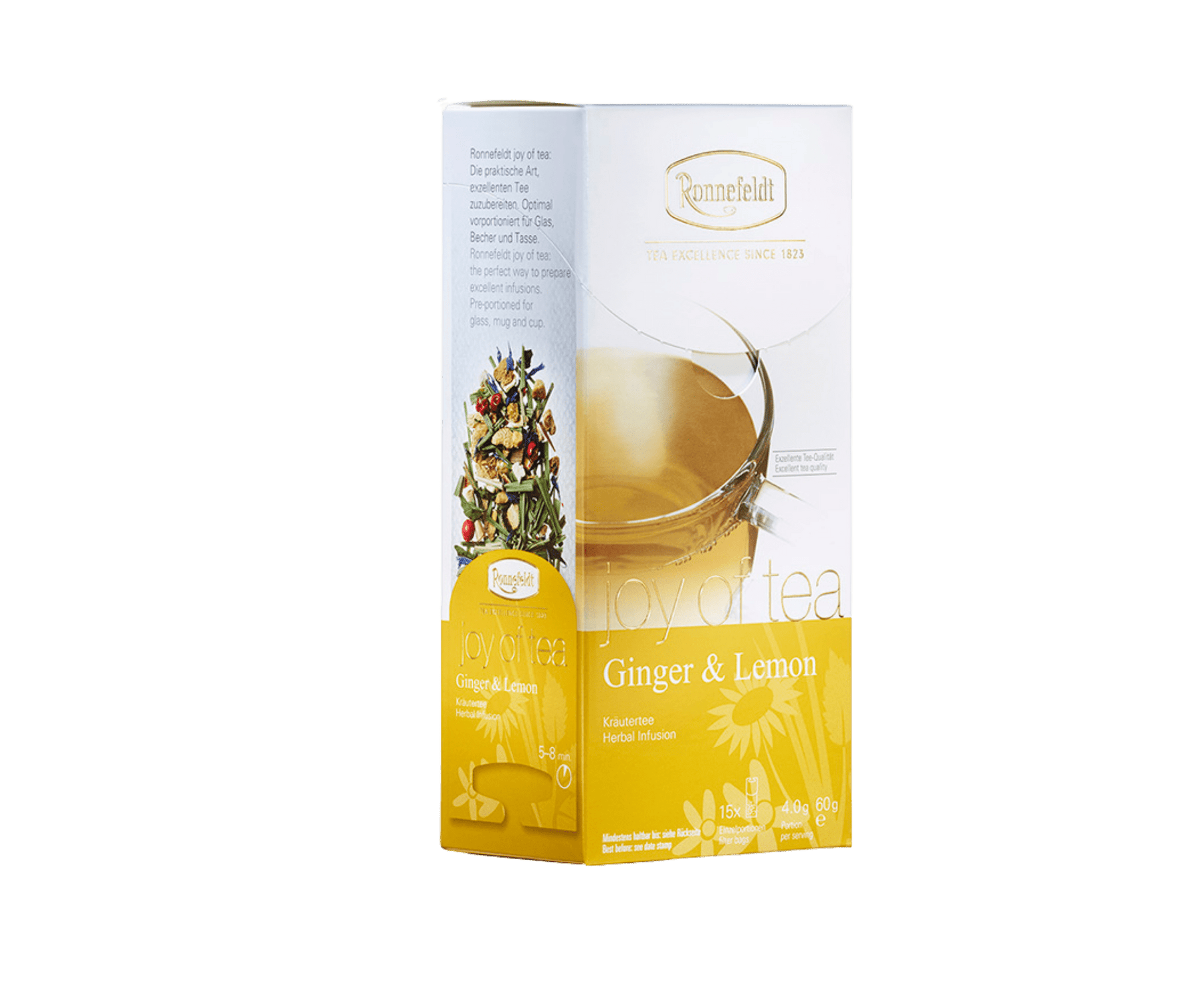 Ingwer, Zitronengras, Zitronenschale, Süssholzwurzel, Krauseminze, Kornblumenblüten, rosa Pfeffer